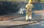Colisão na MG-482 provoca incêndio e destrói motocicleta em Lafaiete
