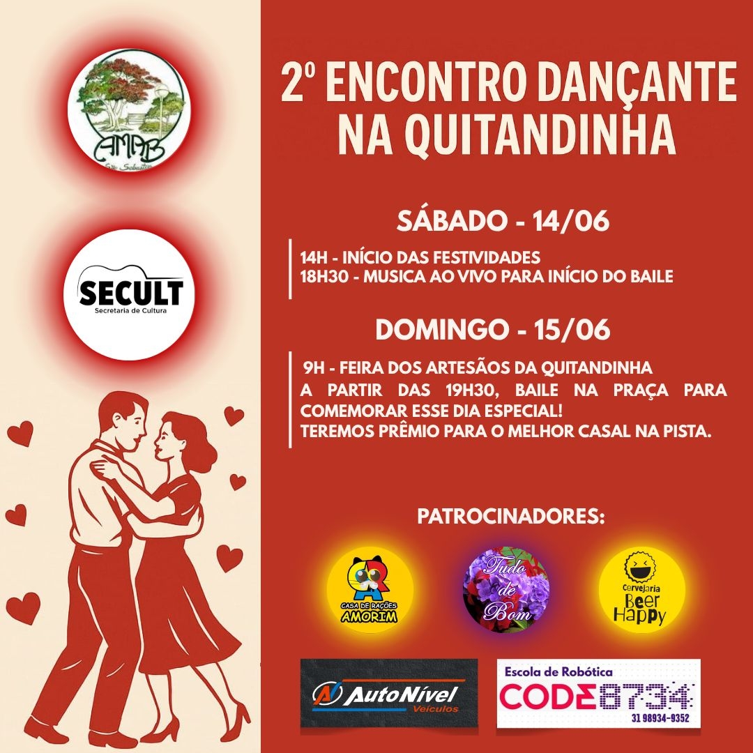 A Associação dos Moradores e Amigos do Bairro São Sebastião realiza, nos dias 14 e 15 de junho, o 2º Encontro Dançante na Quitandinha, iniciativa que promete repetir o sucesso da primeira edição e trazer ainda mais animação para a comunidade. Com programação especial para marcar a semana do Dia dos Namorados, o evento promete encantar os corações apaixonados e oferecer momentos de lazer e integração para todas as idades.
