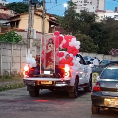 Após a celebração eucarística das 16h deste domingo, 15 de junho, a Imagem Peregrina do Sagrado Coração de Jesus deixou a Paróquia de Nossa Senhora de Lourdes, em Conselheiro Lafaiete, seguindo em procissão motorizada rumo à Paróquia de Nossa Senhora da Conceição. Durante a despedida, as crianças da catequese prestaram uma homenagem ao Sagrado Coração de Jesus, marcando o encerramento da visita à comunidade.