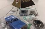 O suspeito carregava 50 pedras de crack, um tablete de maconha prensada e um pote com diversas sementes