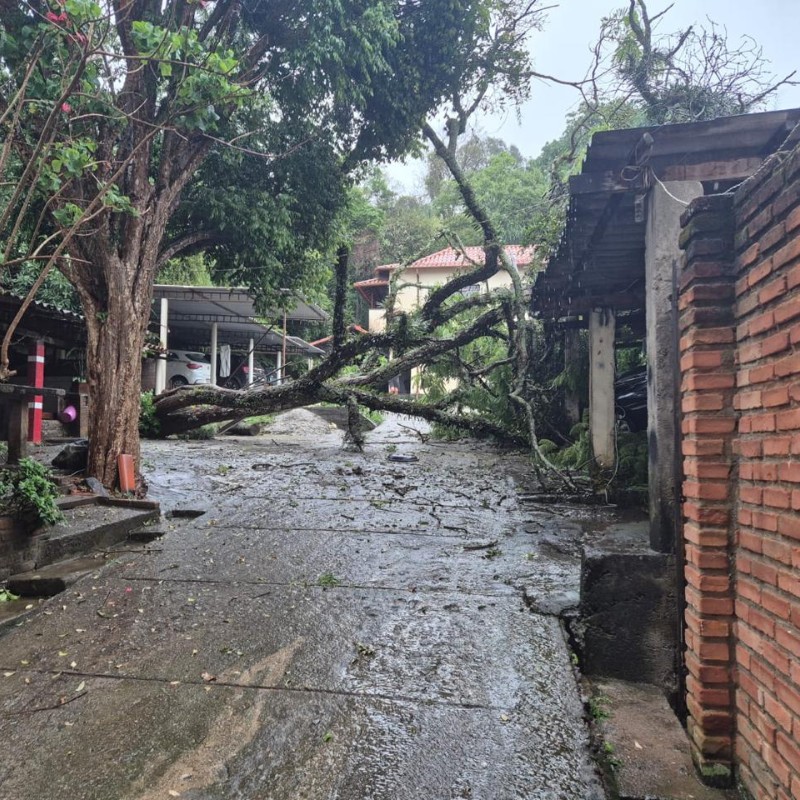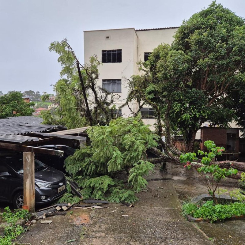 O Corpo de Bombeiros de Barbacena foi acionado para remover duas árvores da espécie jacarandá que caíram sobre veículos dentro de um condomínio multifamiliar. As árvores, de médio porte e cerca de quatro metros de altura, desabaram sobre a cobertura da garagem após as fortes chuvas que atingiram a cidade.