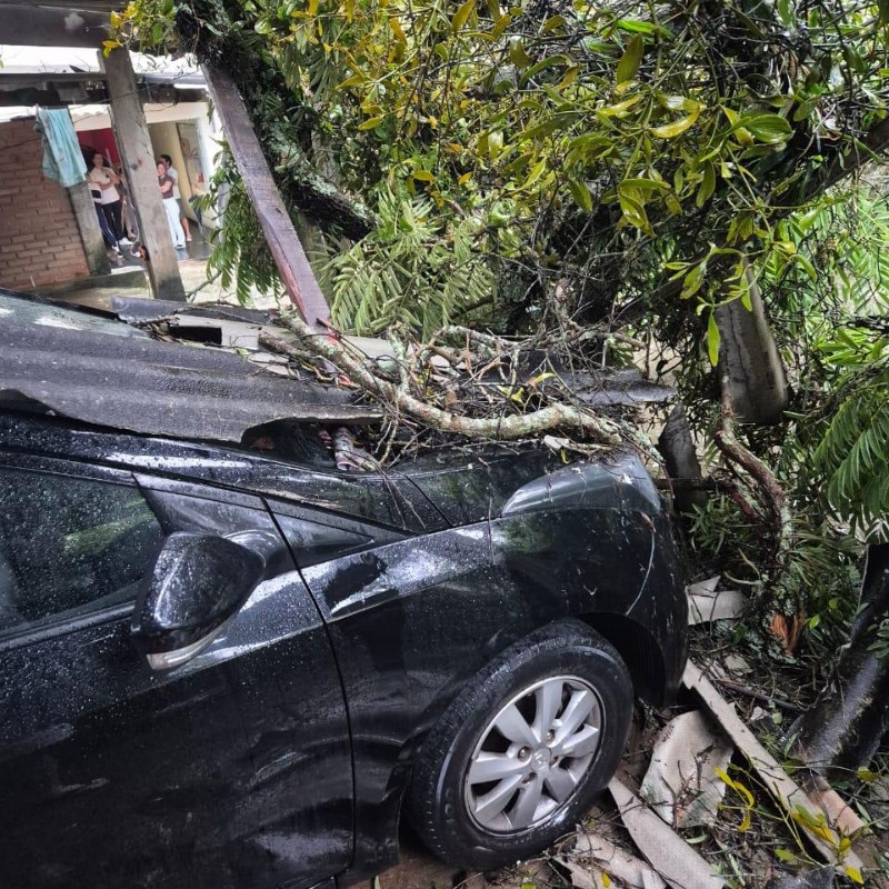 Os galhos atingiram parcialmente dois automóveis, causando danos materiais. A equipe dos bombeiros utilizou equipamentos de proteção individual (EPIs), motosserras e cordas para realizar o corte completo e a retirada das árvores, eliminando o risco de novos incidentes. Ninguém ficou ferido.