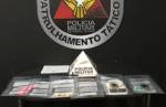 Ao chegar ao local, os militares visualizaram o homem portando um revólver cromado, parcialmente escondido em uma sacola. Ele largou a arma sem oferecer resistência após a ordem dos policiais. O revólver era calibre .32, carregado com cinco munições intactas e uma picotada, ou seja, falha no disparo.