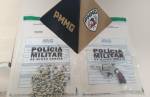 O suspeito foi alcançado e contido pela equipe policial. Durante a busca pessoal, os militares encontraram na cintura do adolescente uma arma de fogo do tipo garrucha, calibre .32, que estava sem munição.