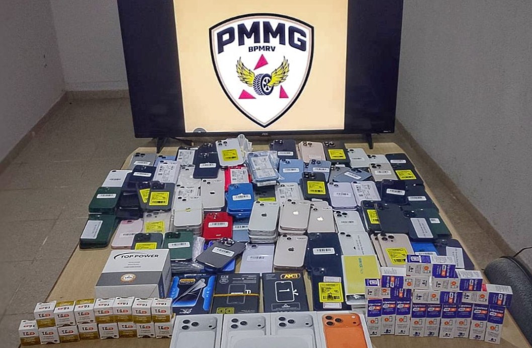 Na busca veicular, os militares identificaram um compartimento oculto no painel. Após verificação e desmontagem, foram localizados diversos produtos de origem estrangeira sem a devida regularização, incluindo aparelhos celulares e medicamentos à base de tirzepatida, substância de controle sanitário, caracterizando, em tese, os crimes de contrabando e tráfico ilícito de drogas.