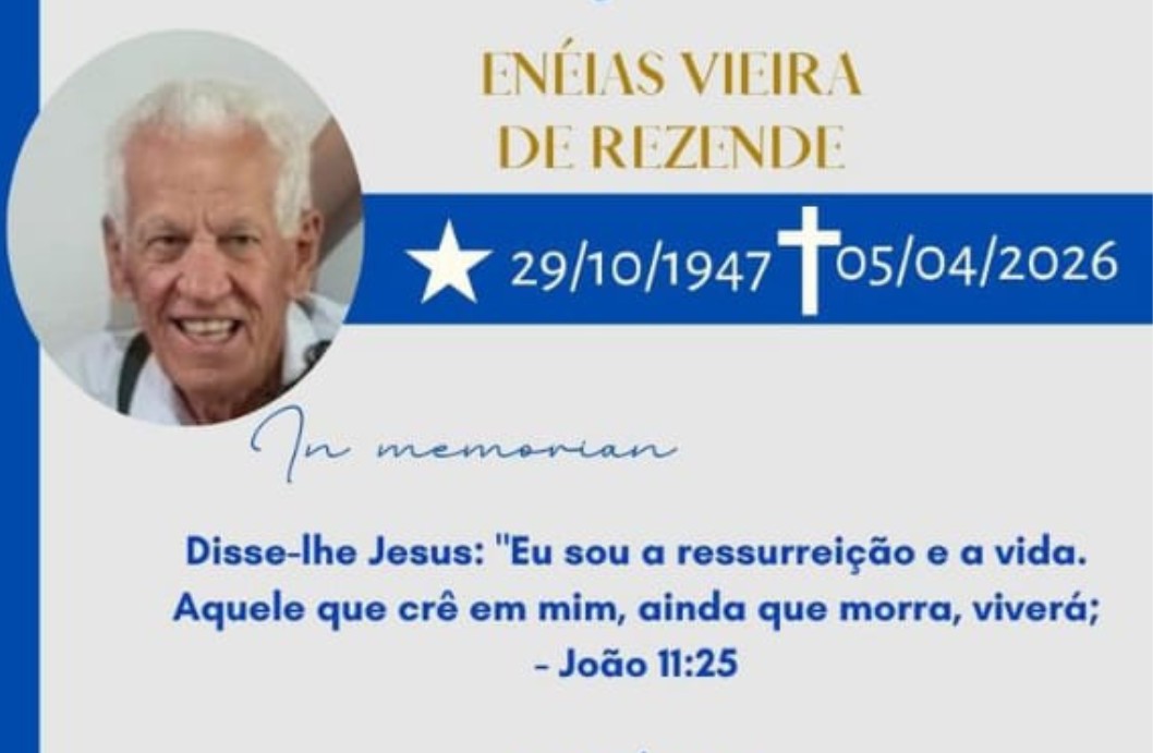 Será sepultado na tarde desta segunda-feira, dia 6, o corpo de Eneias Vieira de Rezende, de 76 anos, vítima de um acidente ocorrido na manhã de domingo, dia 5. A colisão entre um Gol e um Fiat Siena foi registrada na rodovia MG-844, no km 02. Eneias estava no Fiat Siena e não resistiu aos ferimentos. A outra vítima fatal, que conduzia o veículo Gol, não teve a identidade revelada.