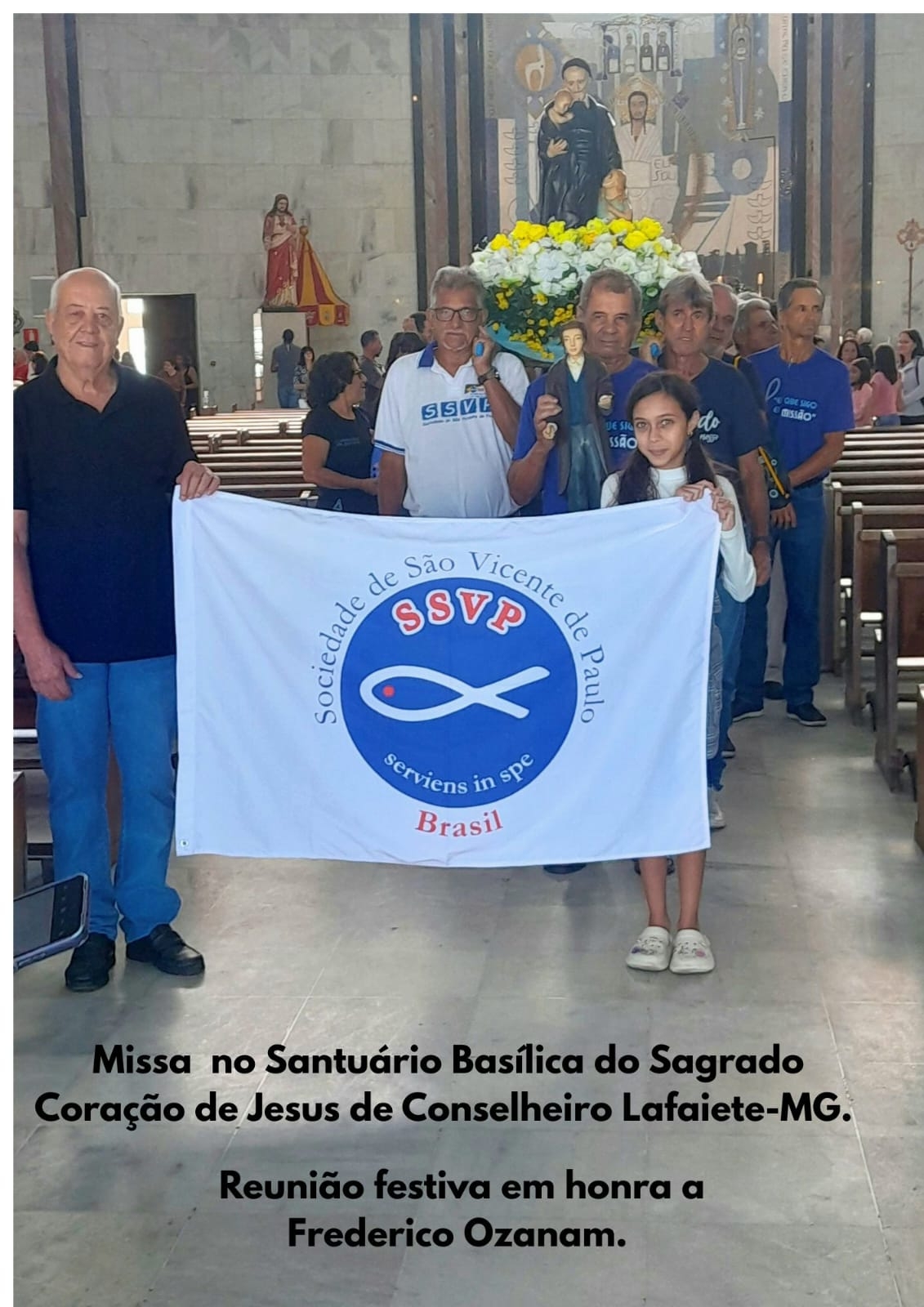 O Conselho Central Sagrado Coração de Jesus, da Sociedade de São Vicente de Paulo de Conselheiro Lafaiete, realizou, no domingo, dia 26, sua reunião festiva em honra ao Antônio Frederico Ozanam.As festividades tiveram início às 8h, com a Santa Missa na Basílica do Sagrado Coração de Jesus, presidida pelo padre Euder Daniane Canuto Monteiro. Em seguida, em pequena procissão, os vicentinos e vicentinas seguiram até o Centro Pastoral 1 da Basílica Sagrado Coração de Jesus (quadra esportiva anexa), onde foi servido o tradicional cafezinho de São Vicente, seguido de homenagens e palestras alusivas ao dia.